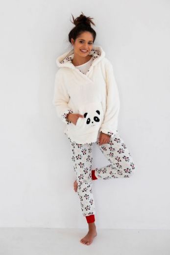 Плюшевая толстовка с капюшоном с ушками, накладной карман декорирован забавной мордочкой панды. Идеальный вариант для домашнего отдыха.
