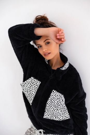 Женская толстовка с воротником-стойкой и накладными карманами, низ на кулисе. Идеальный вариант для домашнего отдыха.