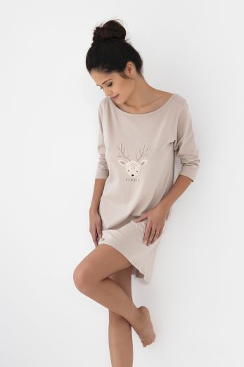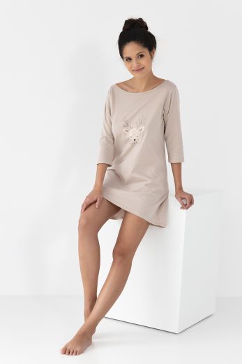 Сорочка Gaia с забавным принтом. Рукава 3/4. Свободный силуэт и длина чуть выше колен. Идеальный вариант для комфортного отдыха дома.