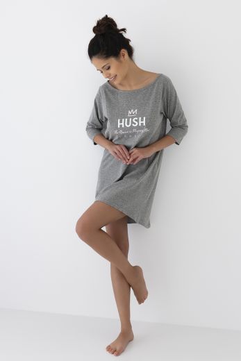 Повседневная сорочка Hush с надписью на груди. Рукава 3/4. Свободный крой и длина чуть выше колен.