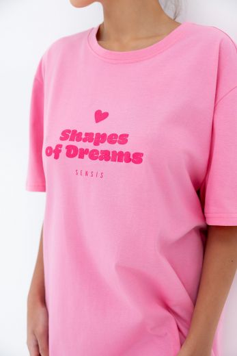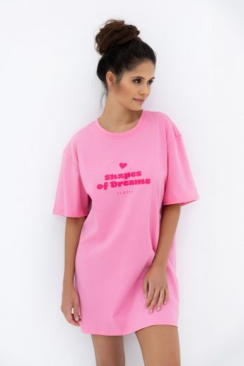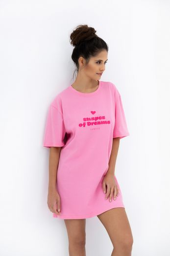 Хлопковая сорочка Promise свободного кроя — идеальный выбор для сна и отдыха дома. Спущенная линия плеча, яркая надпись на груди, длина выше колена. Комфортная и стильная домашняя одежда.