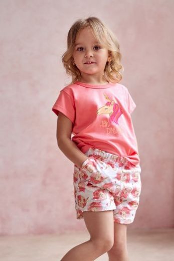 Пижама детская для девочек TARO Mila 3145-3146-01, футболка и шорты, розовый