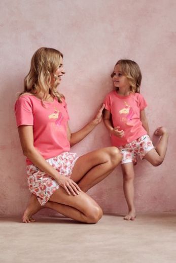 Хлопковая пижама для девочек Mila. Пижама выполненна из качественного и мягкого хлопка, состоит из футболки и шорт. Розовая футболка с рисунком спереди, шорты с забавным принтом. Идеально подходит для сна и в качестве домашнего комплекта.