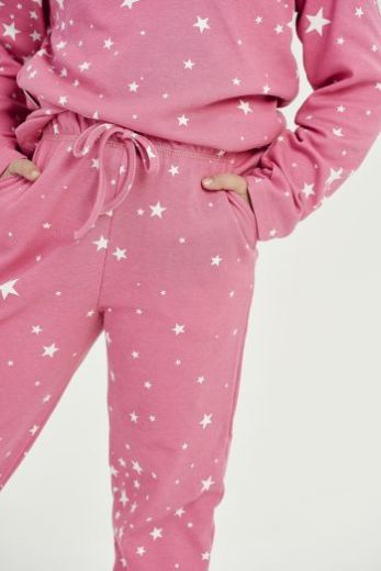 Утепленный домашний костюм для девочек Eryka, выполнен из хлопкового полотна. Лонгслив свободного кроя с круглым вырезом горловины. Брюки на широкой мягкой резинке, по бокам карманы.