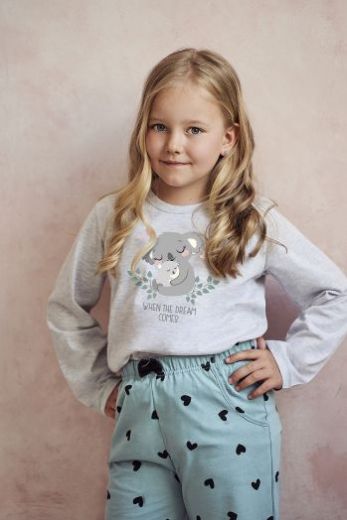 Хлопковая пижама для девочек Nina. Пижама выполненная из качественного и мягкого хлопка, состоит из кофты и брюк. Кофта свободного кроя, с длинными рукавами и круглым вырезом горла, прямые брюки из 100% хлопка, с карманами по бокам. Спереди кофта украшена забавным принтом.