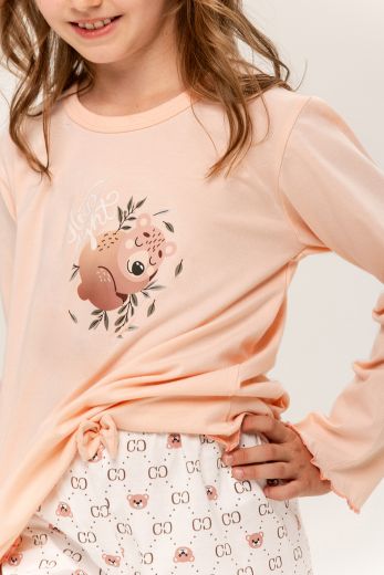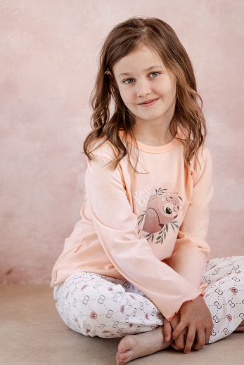 Пижама детская TARO Polly 3271-3272-01, лонгслив и брюки, персиковый