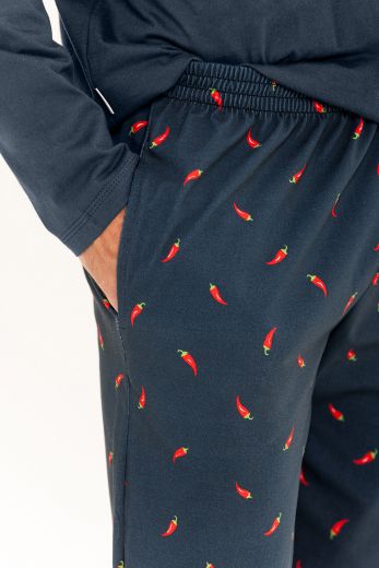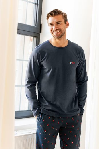 Пижама мужская TARO Eric 3312-3313-01, лонгслив и брюки, темно-синий