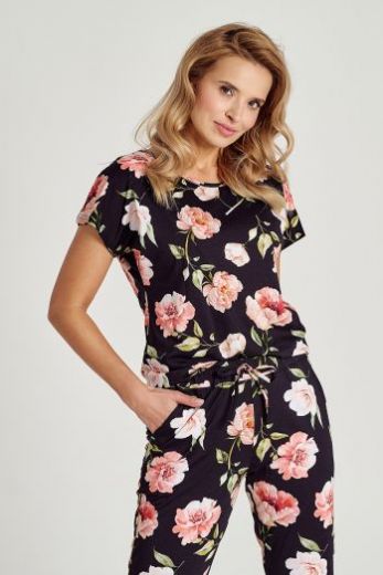 Пижама женская TARO Peony 3136-01, футболка и брюки, черный