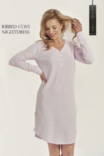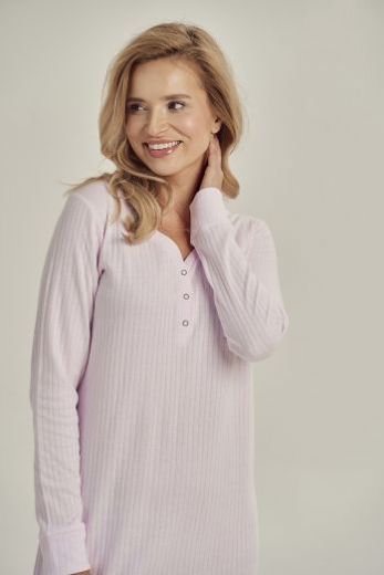 Розовая сорочка в рубчик. Изготовлена из высококачественного хлопка. Сорочка с длинными рукавами и длиной до колена. Планка на кнопках.