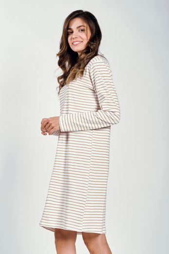 Уютная сорочка из хлопка Maggie. Изготовлена из высококачественного хлопка с принтом полоска. Сорочка с длинным рукавом. Идеально подходит для сна или отдыха в домашней обстановке.