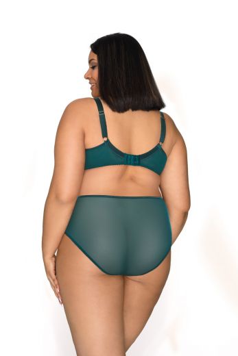 Трусики-слипы с завышенной талией Asti зеленого цвета декорированы вставками из прозрачной сетки с цветочной вышивкой. Ластовица хлопковая.