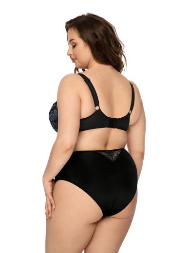 Трусики-слипы с широким бочком Angel из полупрозрачного материала. Спереди выполнены из черно-синего кружева, сзади полупрозрачная сеточка.