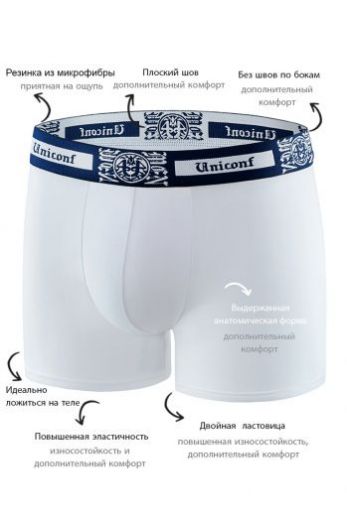 Комплект из 3-х трусов белого, темно-синего и серого цвета. Классические боксеры UNICONF из премиального гипоаллергенного хлопка с добавлением эластана. Брендированная пришивная резинка gothic style обеспечивает терморегуляцию и комфортное прилегание к телу. Усиленная передняя панель, вшитая ластовица и отсутствие боковых швов делают изделие устойчивым к стиркам и продлевают срок использования. Модель не заметна под одеждой, имеет анатомически правильный крой, что в сочетании с инновационными технологиями обработки швов позволяет сделать фигуру визуально более подтянутой и спортивной.